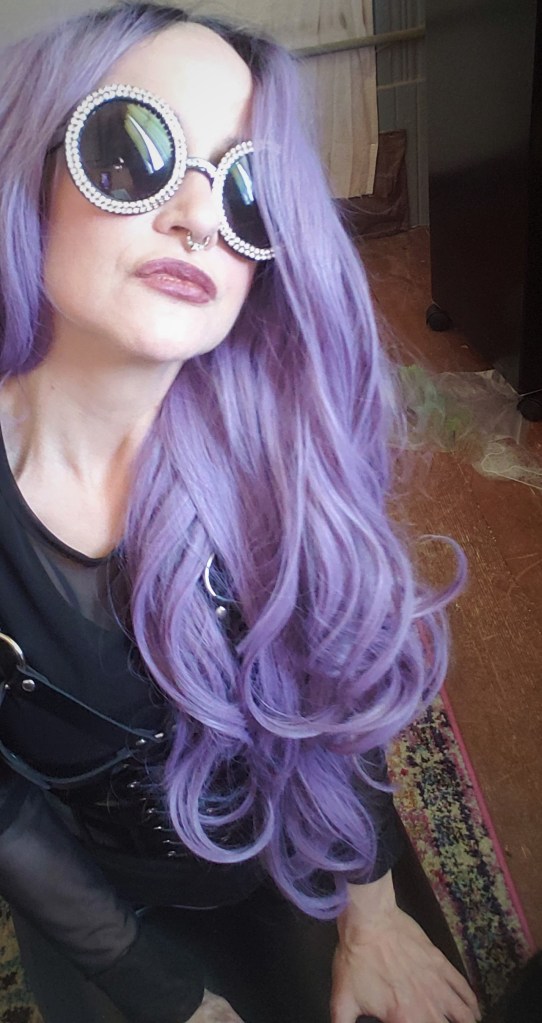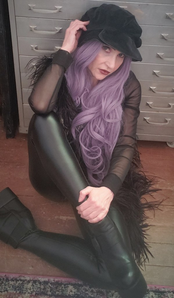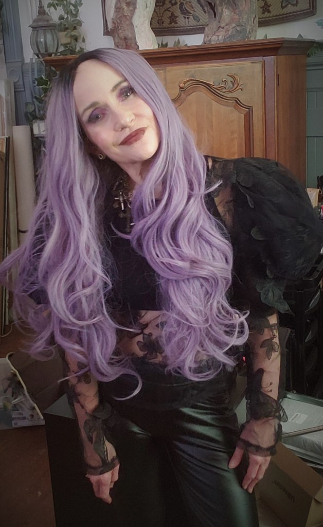 The photograph from which that painting was rendered was taken on a rare night out, when my teaching assistant (Justin) and I had decided to just acknowledge that we were as much friends as we were colleagues, and we went to see Stevie Nicks perform live. Both of us are long-time fans, though he far outshines me with his fandom. As a witchy teen, I was literally almost obsessed with Stevie Nicks, and I think she came about as close to being a Deity for me as anyone or anything ever has. Of course, I dressed for the occasion, and the photograph was a playful collaboration between me and my roommate Sandi Ball, who has an astoundingly good photographic eye. I am extremely fortunate to have access to said eye nearly all the time, now, since we are quarantined together.